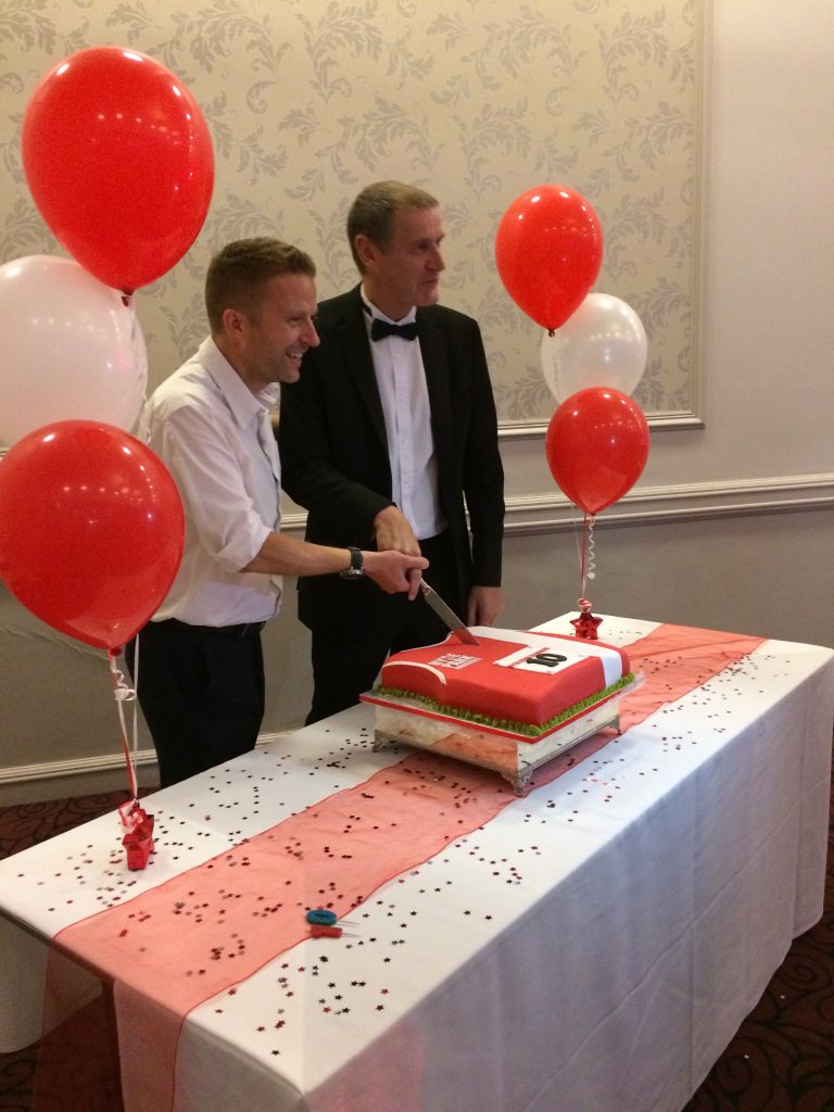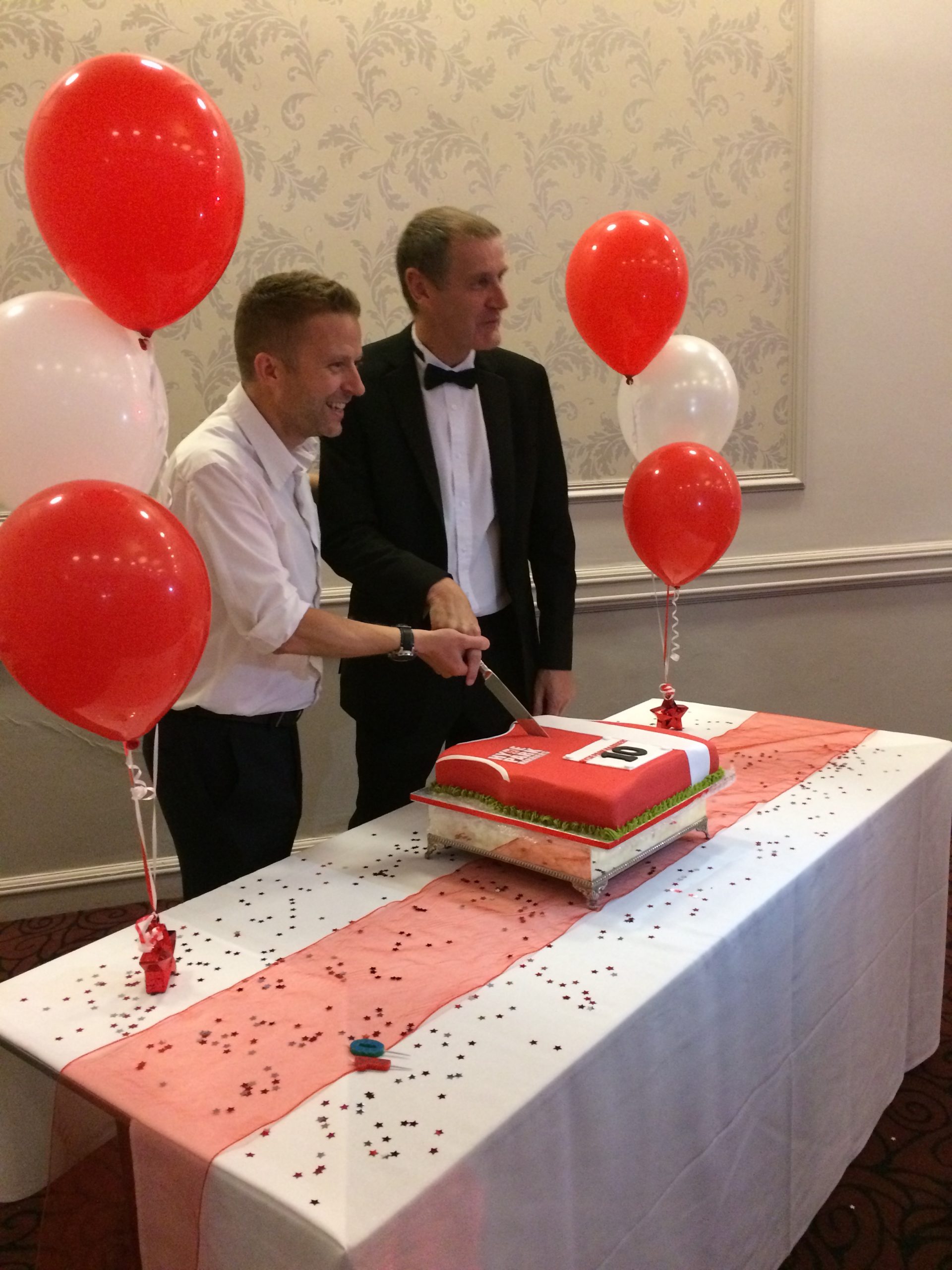 Above: Rick and Tom cut the cake at the 10th anniversary celebration dinner in 2016