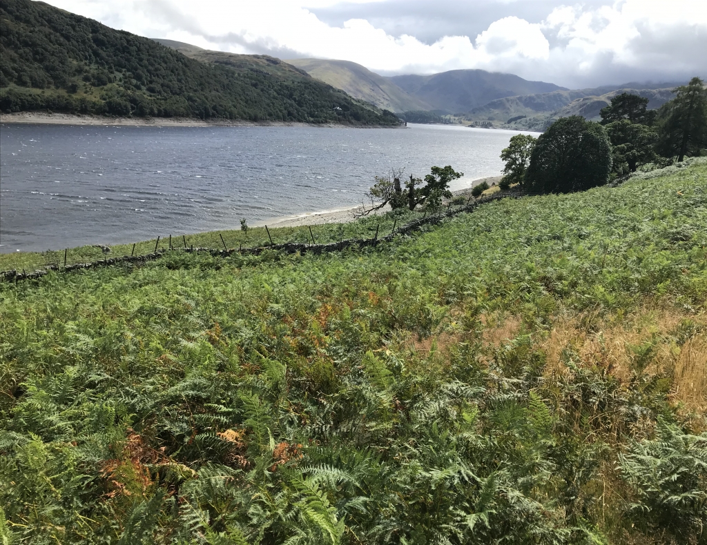 The loop round the Dalemain estate was a friendly run with everyone glad to finally be on the move. The sun was shining, it wasn’t too warm and we were on our way. The loop was a great way to thin out the crowd before hitting the proper course. Nice easy first few miles along the river to Pooley Bridge to warm up the legs. I managed to hold back the pace and not race off like an over excited puppy. The first climb up from Pooley Bridge to High Street (not the summit just part of the old roman road) was pretty gradual and then a nice long gentle descent into Howtown. The rain started along this section and got quite persistent so on with the waterproof (top only)