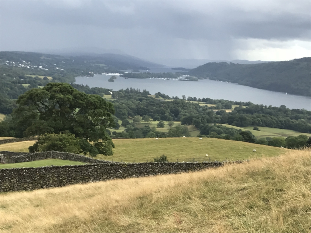 It was still raining quite heavily when I left the warmth of Kentmere Village hall and this first mile or so of the leg was the only time on the journey when I felt cold. This soon stopped as I started to ascent Garburn pass towards Troutbeck. The ascent wasn’t very steep or long which was appreciated at this point. At the top of the pass the weather brightened up again with some amazing views over the southern lakes.