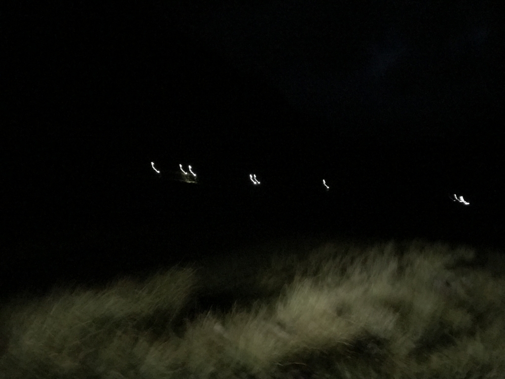 The short road section before the path up to High Tilberthwaite was an brief opportunity to go a little quicker. The mood was high amongst the competitors as we had all found the unmanned checkpoint and dibbed in. The trail up to High Tilberthwaite wasn’t steep and was an easy ascent. It was now totally dark as the cloud cover led to having no benefit from the full moon. We quietly passed through the farm and village and on towards the final checkpoint which could be seen from about a mile away.
